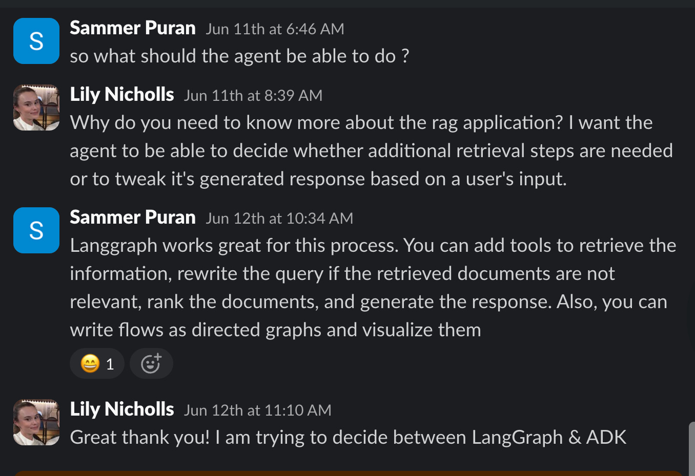 “Great thank you! I am trying to decide between LangGraph & ADK”